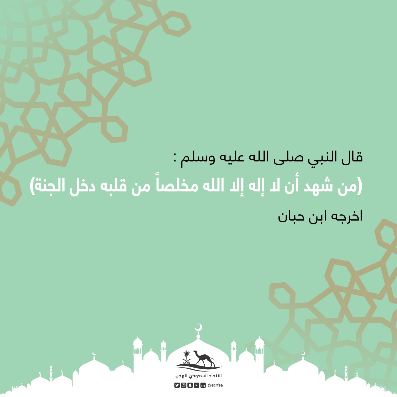 الاتحاد السعودي للهجن On Twitter قال النبي صلى الله عليه وسلم من شهد أن لا إله إلا الله مخلصا من قلبه دخل الجنة اخرجه ابن حبان رمضان الاتحاد السعودي للهجن Https T Co Rtz2sojqai