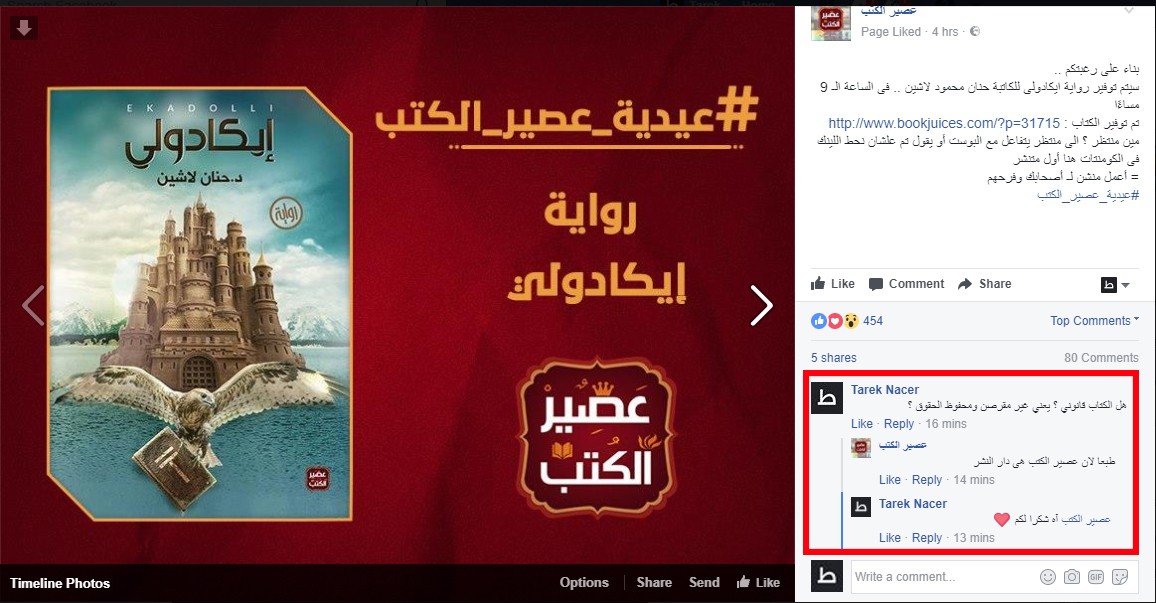 من صفحة على فيس بوك لـدار نشر مؤسسو عصير الكتب هدفنا نشر الثقافة منوعات الوطن